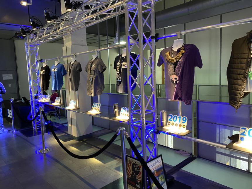 Being the 10th anniversary of Nsec, the old shirts and badges decorated the space between the big and the small room, a testament to the rich history of NorthSec.